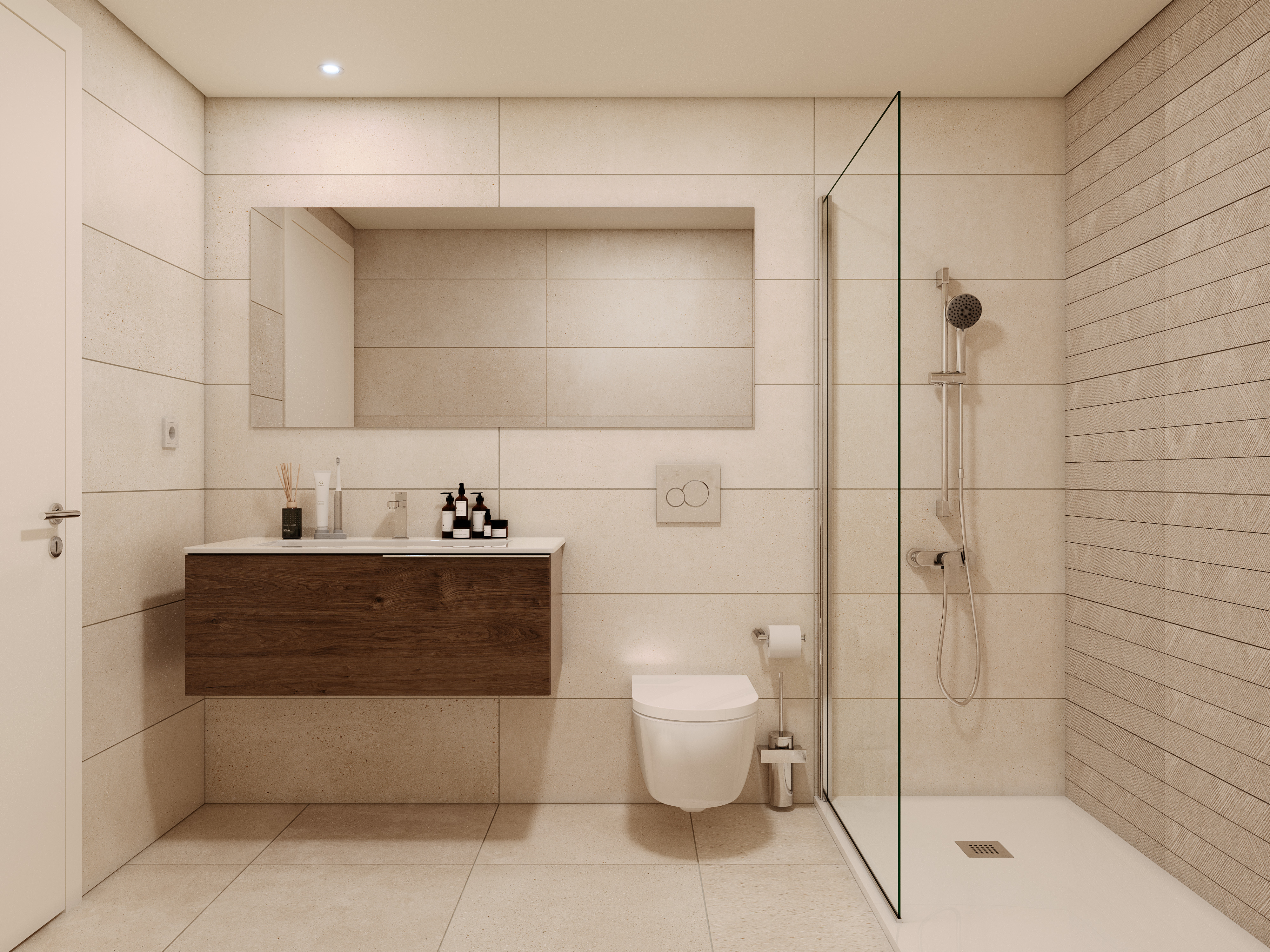 Com 219 apartamentos, do T1 ao T3, distingue-se pela arquitetura contemporânea e pelas áreas comuns pensadas para o bem-estar e a vivência comunitária: jardim privativo, sala gourmet, co-work, bicicletário e área de crosstraining.
